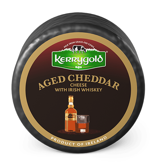 Infused with the robust flavor of whiskey, Kerrygold’s rich and creamy Aged Cheddar now has unique undertones of the smooth, woody and nutty taste of pure Irish Whiskey. Entrenched in the history and traditions of Ireland, Cheddar and whiskey are now together in one spirited Irish grass-fed cow’s milk cheese. This tasty combination is the perfect compliment to your party’s gourmet cheese platter and is also a unique gift item.