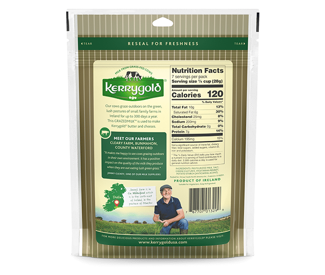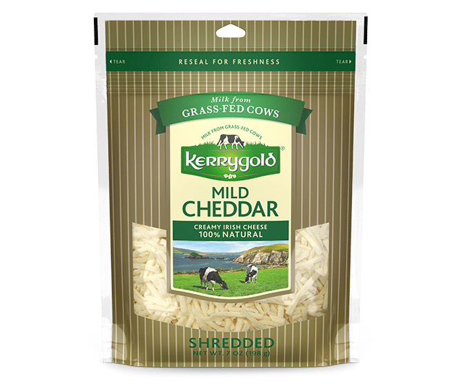 Super convenient, not to mention super delicious, this tangy and buttery cheddar comes in a resealable packet, already shredded. So you can quickly and conveniently add Kerrygold Mild Cheddar to lasagna, baked potatoes or whatever treat you feel like whipping up in the kitchen.