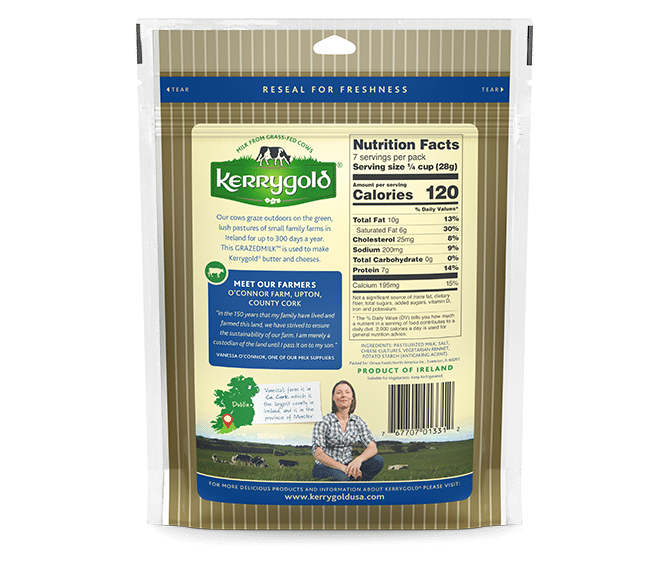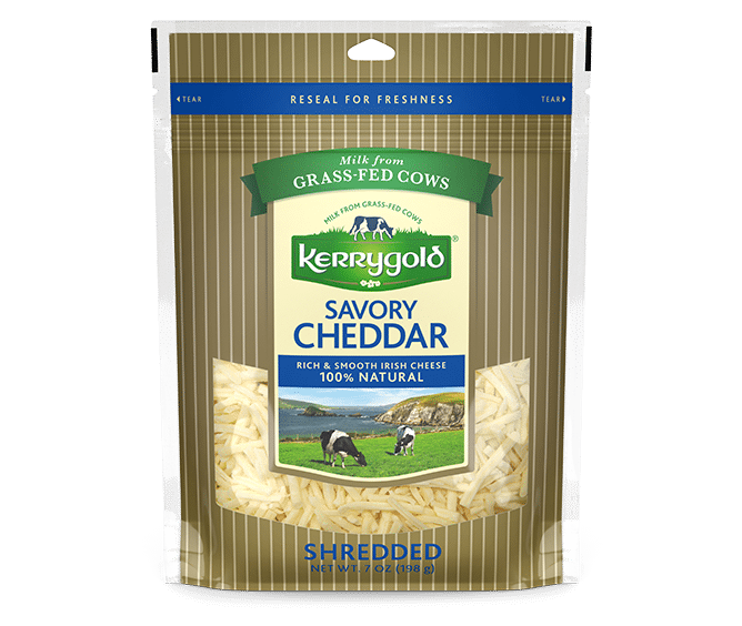 We’ve shredded this mellow, balanced and smooth cheddar so you can easily and quickly add it to your favorite dishes and recipes, making them all the more delicious in the process. Kerrygold Savory Cheddar’s mellow flavor comes with a hint of butter and a faint zing. Made from the milk of Irish grass-fed cows, we bet this cheese will become a tasty staple of your kitchen cupboard.