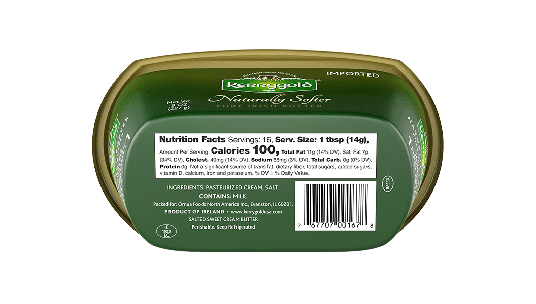 In the tradition of all of our Kerrygold Irish Butters, the flavor is creamy, the color remarkably golden, and the all-natural butter is hormone-free. Spread on the outside of soft bread and cheese sandwiches and grill. Or make your own savory spreadable butter with lime and chili powder and top a flatiron steak or grilled corn in the husk.