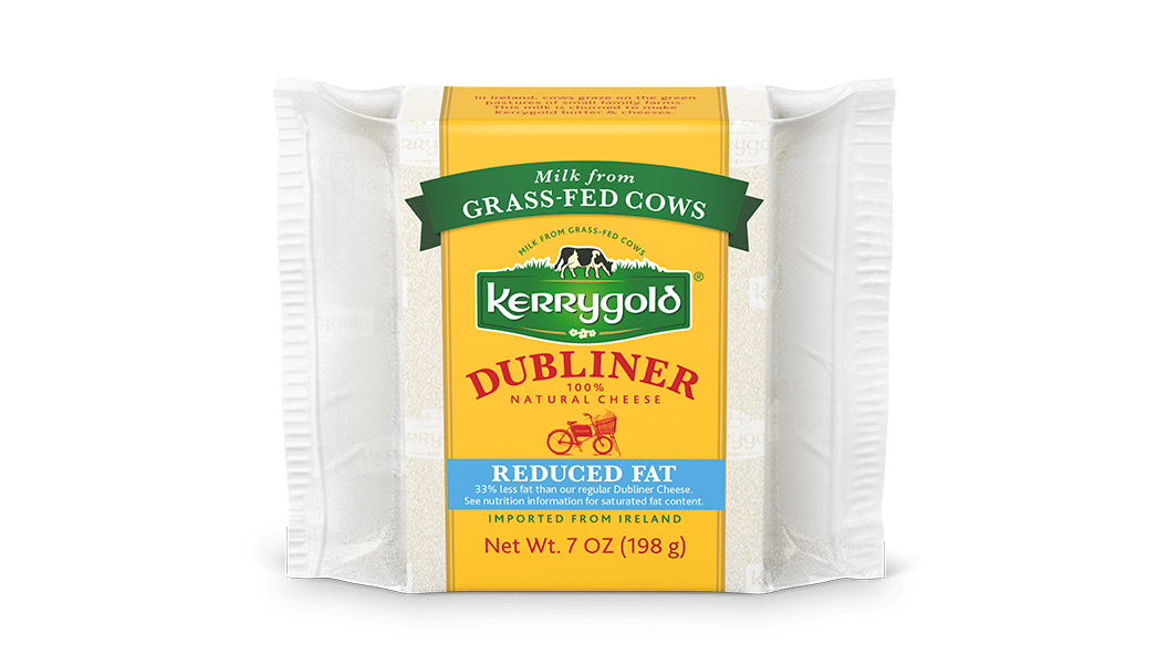 Kerrygold Reduced Fat Dubliner® delivers all the flavor of the original, full-fat Dubliner®, for 30 fewer calories and 33% less fat per 1-ounce serving.