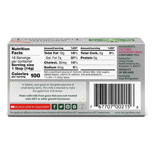 Kerrygold Unsalted Butter Sticks are a great all-purpose, all-natural butter with a nuanced cultured flavor profile. Spread it on a warm piece of crusty bread or serve it tableside with every meal. It’s also a wonderful butter for cooking. The grass-fed cow’s milk flavor elevates your dishes and makes Kerrygold the best-tasting butter.